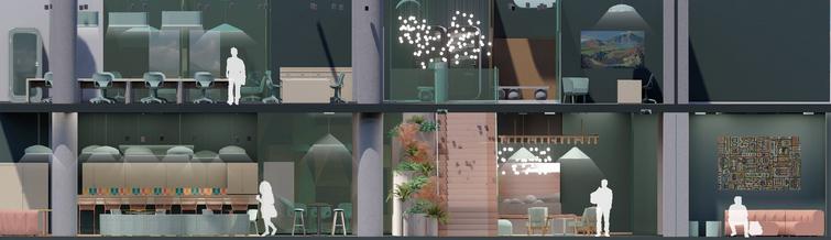 Our project seeks to communicate this concept through the use of mezzolevels, geometric forms, and nodes to the past, present, and future of Pacific Northwest design.