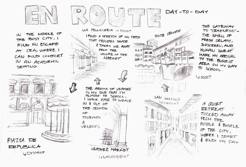 My studio consisted of exploring the history of Florence’s rich built environment, sketching the city’s ornate details, and visiting famous wineries around Tuscany to learn more about hospitality design.
