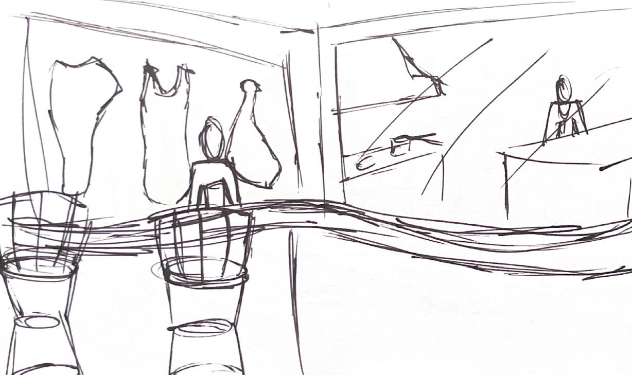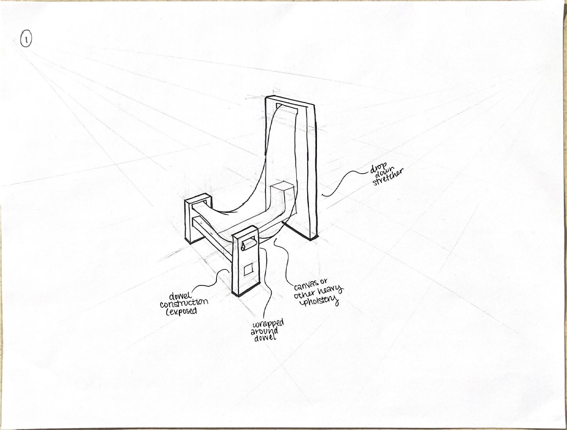 Left: Concept sketch, 1/4” scale model, Revit rendering. Above: Finished piece