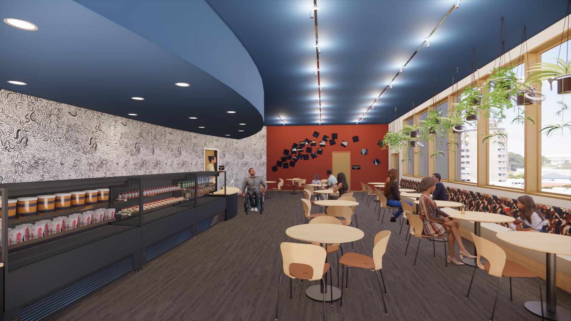 The Cafe, Performance Zone, and Social Zone were combined as a way to contain as much of the noise from those activities as possible to a single area.