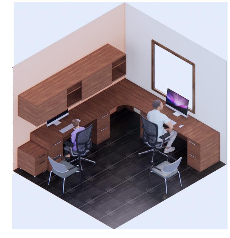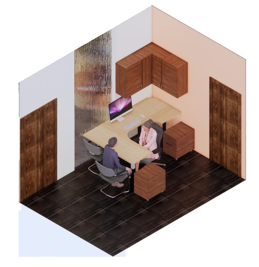 The Reception is located adjacent to the elevator entry to greet and assist users. Additionally, the placement of the reception desk allows for optimum sight lines to most occupiable areas.