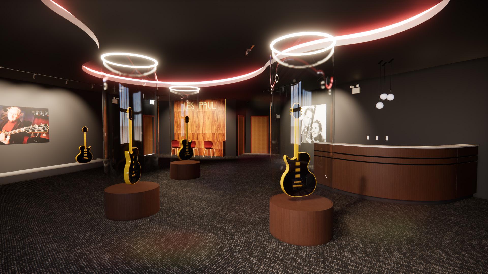 This technical course delved into the specifics of lighting and lighting design. As students, we were asked to design a portion of a small museum with accurate and appropriate lighting for the intended use of the space. Shown is a proposed museum exhibit for Waukesha native inventor and musician, Les Paul.