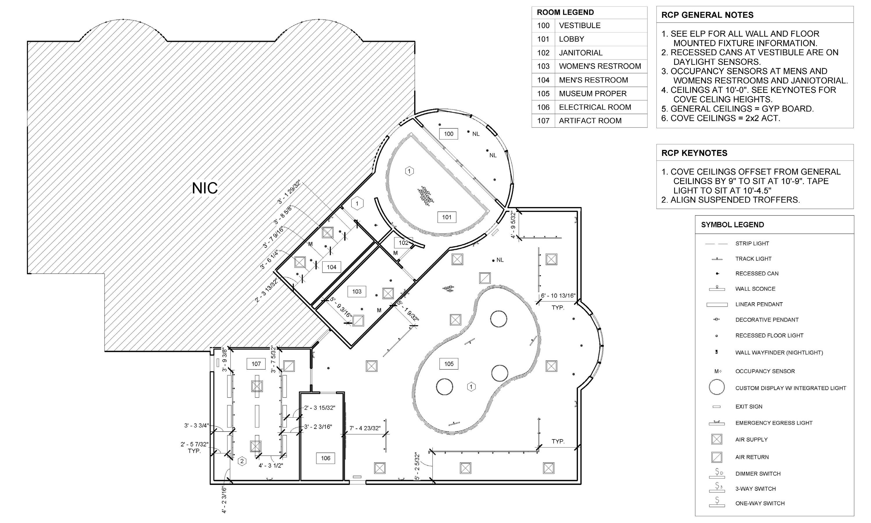 RETAIL STORE 102 SOUTH VESTIBULE 100 ATRIUM 101 GALLERY A 104 GALLERY F 109 ARCHIVAL LIBRARY 112 MULTIPURPOSE ROOM 113 NORTH VESTIBULE 126 CAFE 115 WOMENS TOILET ROOM 114B MENS TOILET ROOM 114A RETAIL STORAGE 102A COAT CHECK 103 MOTHERS ROOM 114C MULTIPURPOSE STORAGE 113A DATA/COMM 111 GALLERY STORAGE 110 GALLERY B 105 GALLERY D 107 GALLERY C 106 GALLERY E 108 Custom Logo Top: Rendered Floor Plan. Bottom: Reflected Ceiling Plan. 100 101 102 102A 103 104 105 106 107 108 109 110 111 112 113 113A 114A 114B 114C 115 116 117 118 119 120A-C 121A-C 122 123 123A 124 125 126 South Vestible Atrium Retail Store Retail Storage Coat Check Gallery A Gallery B Gallery C Gallery D Gallery E Gallery F Gallery Storage Data/Comm/Electrical Archival Library Multipurpose Space Multipurpose Storage Men’s Restroom Women’s Restroom Mother’s Room Cafe Kitchen (NIC) Janitorial Open Office Conference Room Private Offices Employee Restrooms Employee Mother’s Room Break Area Employee Corridor Janitorial Mechanical (NIC) North Vestibule