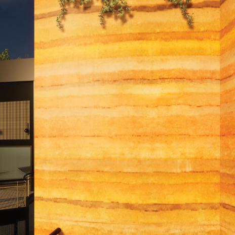 Created by compacting layers of natural earth materials. Rammed Earth provides a naturally clean, comfortable and safe option. It is used structurally, with a natural fire rating. Low maintenance, low in embodied energies, non-toxic and pest proof.