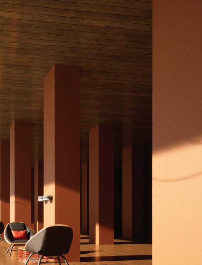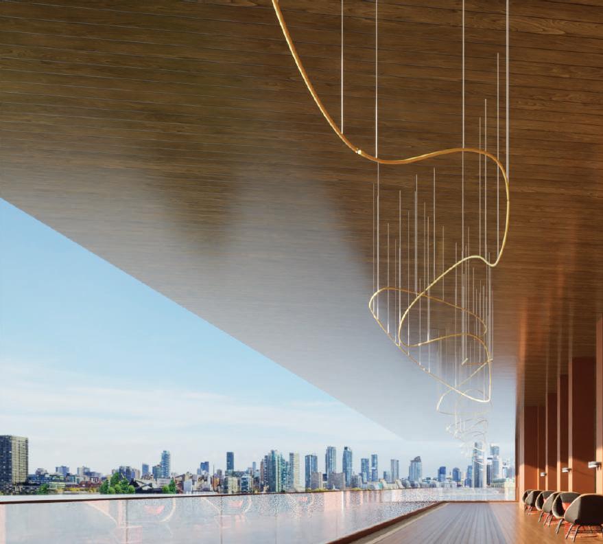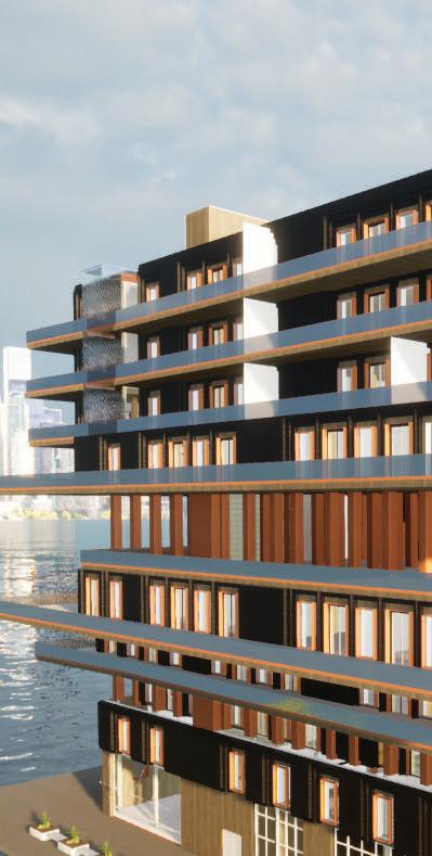 This luxurious urban modern condominium is situated downtown Toronto. Utilizing cross laminated timber (CLT) framing for its structure, this building exudes strength and resilience while providing a environmental benefit to residents. The use of CLT absorbs carbon monoxide, helping to reduce the contribution to global warming. With a captivating aesthetic that refelcts the natural beauty of its materials such as the long corton steel columns exposed to the exterior, while enjoying the natural beauty of its surroudings. This building is to designed to catch the viewers attention upon passing, as well as provide an unparalleled living experience.