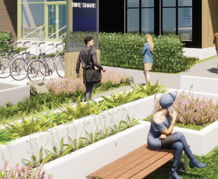 Through the use of design, we can create a space that will unify the visitors in a social environment for those who wish to enter and connect. This live/work/age low-rise residential and commercial development provides sustainable features, accompanied by the convenient retail below to serve the community. The concept of our design is to create a clean, sleek, and comforting environemnt for those who wish to grow as a community, as well as provide a sense of wonder to the lives it uplifts. The colour green is used to create a trusting and calming effect, which also signifies stability and self-growth to those surrounded by it.
