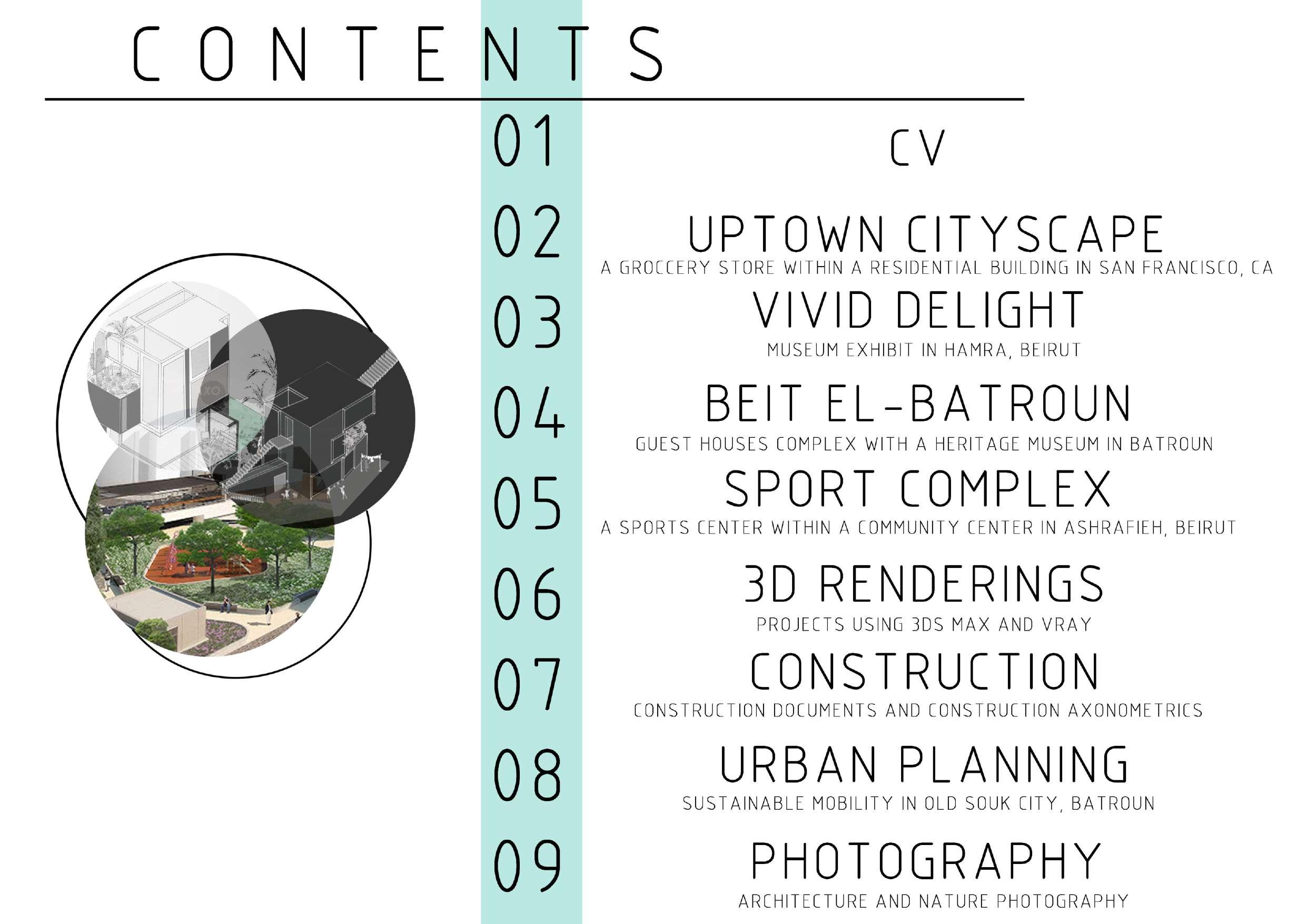 2019 - 2024 Lebanese American University (LAU), Jbeil - Lebanon -Bachelor degree in Architecture and Design, including M1 -Dean's Honor list with a GPA of 3.414