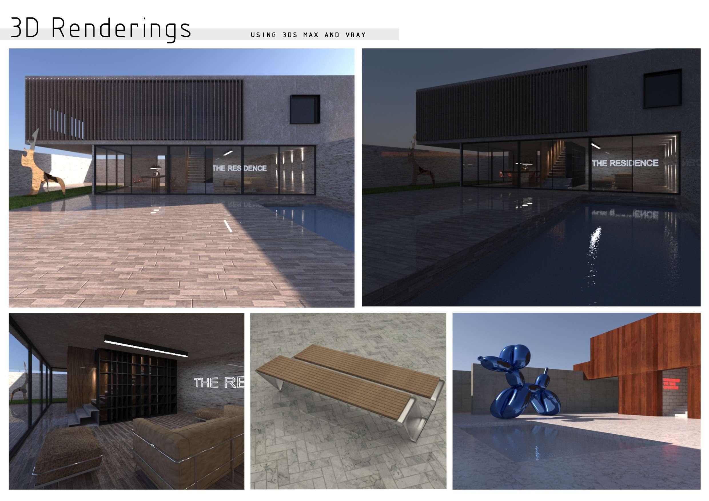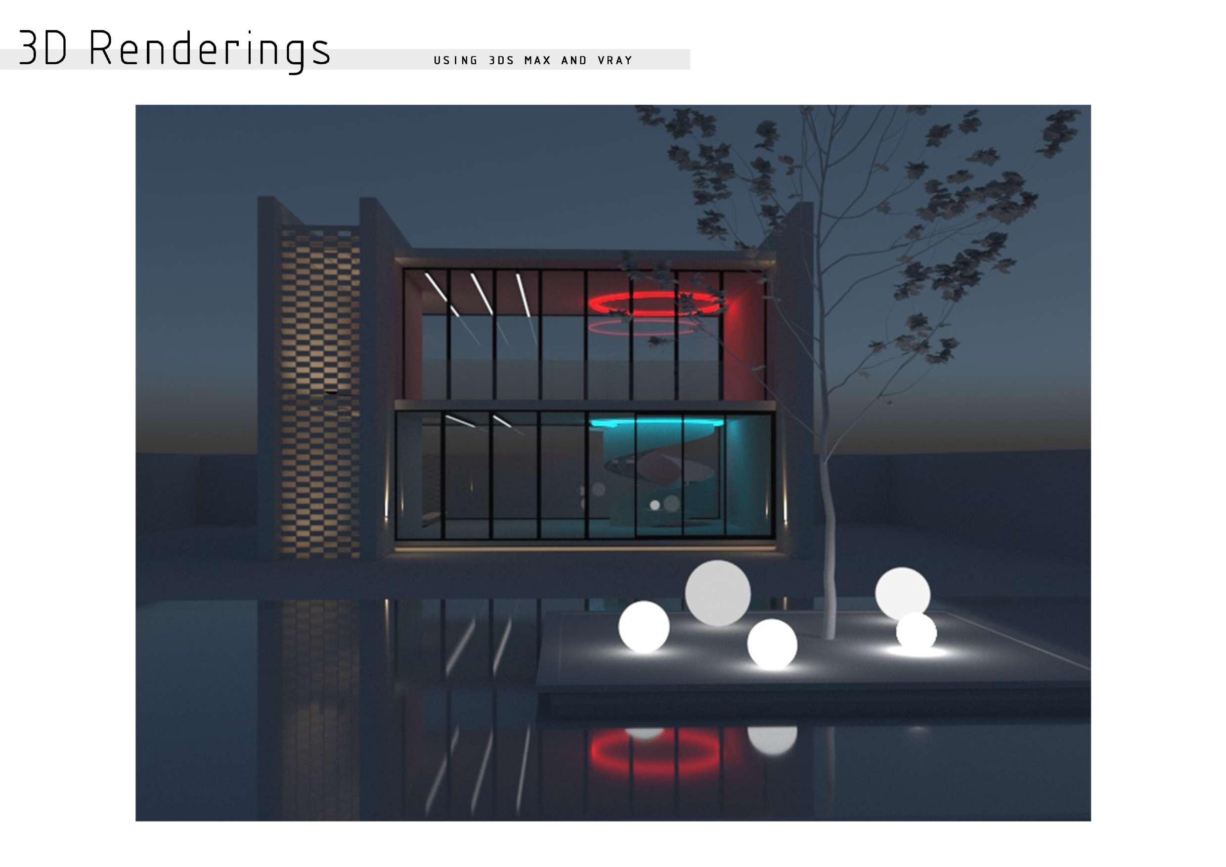 Software: Experienced in: Photoshop, AutoCAD, 3DsHax, VRay, Revit, Sketchup, Rhino and Illustrator.