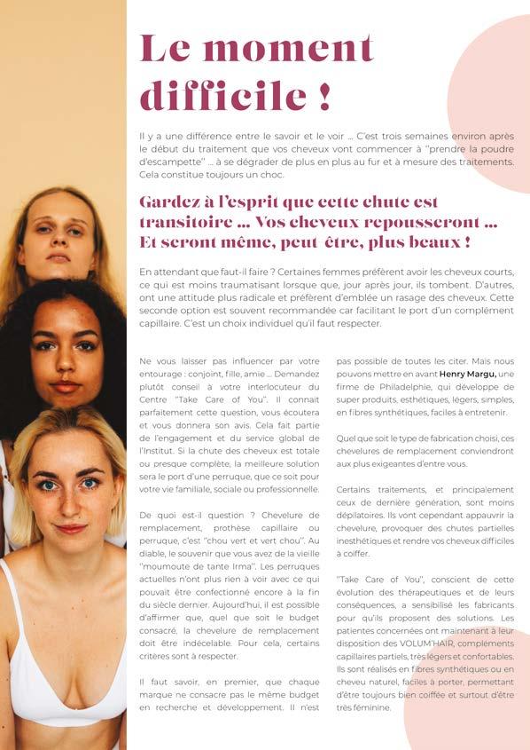 Etant coiffeuse à l’origine, ce département fut d’abord un «plus» qui au fur et à mesure des années, s’est transformée en vraie vocation, passée depuis au premier plan. Ayant elle-même souffert de la «maladie», Véronique s’est pris de passion à aider les autres et vous comprend au-delà des mots. Votre sourire est sa meilleure récompense.