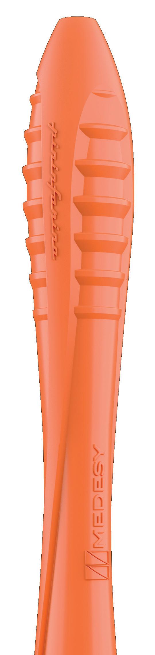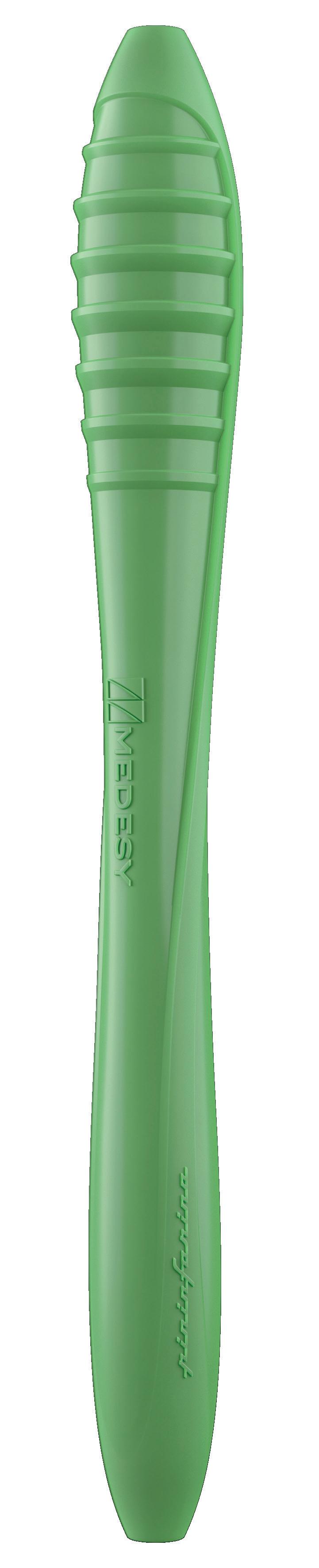 A detailed analysis of available materials on the market, on their surface texture and on their specific features was carried out until a superior type of Silicone was selected. A safe material, certified and approved by FDA, fitting also utilization on alimentary sector. On the ergonomics side an accurate study was performed to define the different forces which are required while the dentist hand is holding and using the instrument. Exact data analysis related to the pulling and pushing force and on the rotation capacity, was essential to the creation of a design where the silicone texture increases the grip and maximises the hold of the object even while wearing gloves.