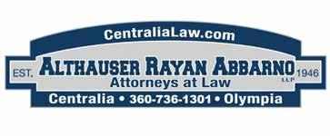 Public Room 23 Bub’s Pub Sports Bar & Grill 18, 26, 27 Butler Surveying Inc 38 Buzzard O’Rourke Attorneys at Law 12, 13, 14 C Carquest Auto Parts - Central Automotive Supply 87 CARSTAR Hub City Collision 85, 86 Casa Ramos Mexican Restaurant 24, 30 Cascade Community Healthcare 68 Cattermole Funeral Home 34 CCFAB - Curfman Custom Fabrication LLC 38 Centerville Cafe 19 Centerville Western Stores 37, 80, 84 Central Park Tanning & Wellness 59 Centralia Orthodontics 70 Centralia Pet Resort 35 Centralia Pharmacy 60, 72 Centralia Point Assisted Living and Memory Care 64 Chehalis Children’s Clinic 66 Chehalis Outfitters 82 Chehalis Plumbing, Inc 50 Chehalis Rentals 33, 50 Chehalis Sheet Metal & Roofing 46, 54 Colton Pharmacy 72 Community Events 71 Community First Auto Centers 86 CORE Health 68 Cosmic Tattoo 56, 60, 61 Country Chicks LLC Markets 60, 74 Country Fresh Laundry 32 Courtyard Salon & Spa 57, 58 Cristian Orozco - COUNTRY Financial Agent 34 Curtis D Burghart, OD, PS 70 D D B Cooper Appliances 41 D9 Farms 75, 78 Dave’s Econ-O-Wash & Dry Cleaning 32 David Russell, Northwest Pediatric Center 70 Dawn’s Delectables Dessert & Sandwich Shoppe 22 DB Roof Co 45 Dick’s Brewing Co 19, 22 Doggie Designs Pet Grooming 36 Donna’s Place 26 Dunnagan Development, LLC 33 E East County Guns 78 Elam’s Home Furnishings and Mattress Gallery 44, 45, 80 EnviroTech Septic Solutions 38 Eren Millam Realtor 44 Exodus Electric, LLC 44 Express Employment Professionals 13 F The Farm Store 75, 78 Fern Ridge Floral & Design 34 Fiddlers Coffee 26 Foot & Ankle Surgical Associates 70 Foresight Surveying Inc 38 Fred’s Discount Tire and Carwash 88 Fuller’s Shop N Kart 76, 77 The Garage 57, 58 The Glass Guy 86, 87 G Goebel Septic Tank Service, Inc 32, 33, 36, 38, 54, 55 Grant’s Towing Centralia 90 Great NorthWest Federal Credit Union 12, 96, 97 GT Carpet Cleaning 42 Gunsmoke Food Trailer 23 The Gutter Man 45 H Harold’s Burger Bar 20, 22, 23, 24 Harry Ritchie’s Jewelers Chehalis 80 HearingLife of Centralia WA 66 Heather Stewart Realtor 52, 53 Henricksen Family Dental 64, 65 Heritage Restoration 52 Heymann Whinery 30 Historic Barbershop 57 Holiday Inn Express & Suites 10 Holley’s Place 23 Hub City Auto Glass 86 Hub City Supply 54 The Huntting’s Pumpkin Patch and Haunted forest 8 I I-5 Carpet One Floor & Home 42, 43 I-5 Toyota 86 Industrial Fabrication and Testing 38, 39 Insert Coin 8, 9, 16, 20, 21, 22, 24, 27 J Jack Russell Wildlife Control 50 Jeremy’s Farm to Table 23 Judy’s Country Kitchen 18, 19 Julia J Gaul, Edward Jones 13 K Kaija’s Garden & Pet 44, 82 KELA 28, 29, 83, 84, 89 Kelly’s Body Shop-Collision 1 86 L Lady Of The Lake Public House 26