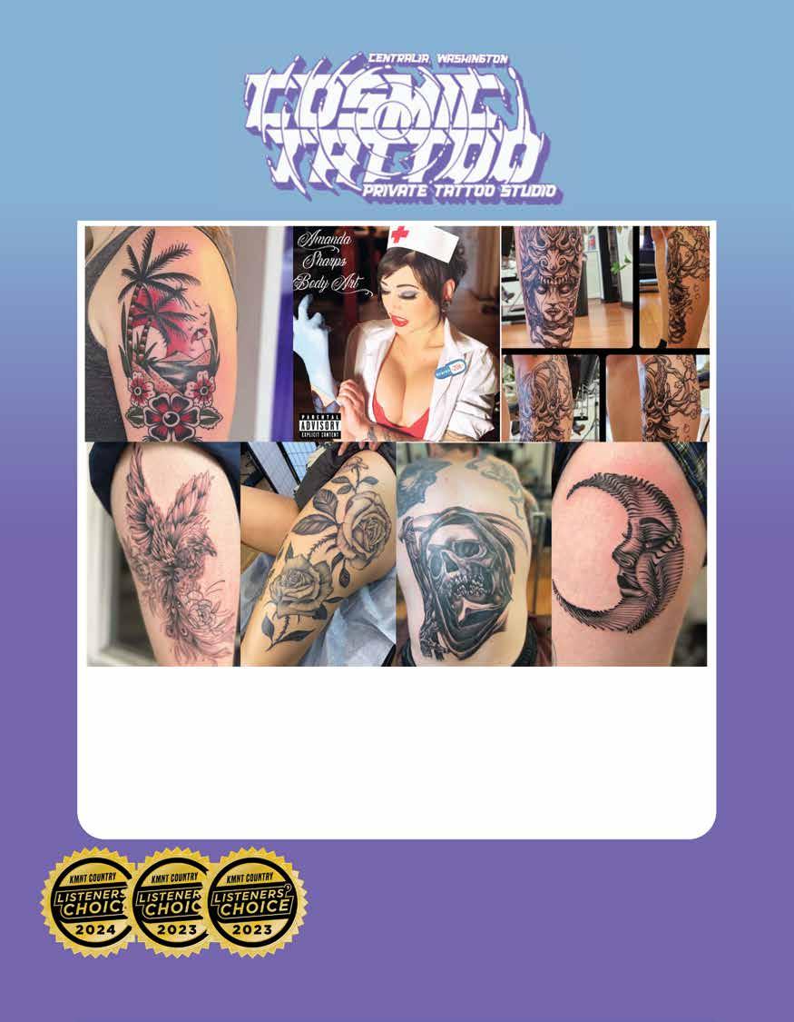 KMNT95 COUNTRYLISTENERS’CHOICE2024–PRESENTEDBYGREATNORTHWESTFEDERALCREDITUNION Lakeside Industries Centralia Office & Asphalt Plant 41 Lasso & Lens Photography 36 LauraLee Zuber-Titus, John L Scott Real Estate Centralia 32, 50, 52, Back Cover Laurie Gunsolley LLC 13 Lewis County Coffee Company 21, 26 Lewis County Eye & Vision 70 Lincoln Creek Lumber Ace Hardware 80 Little Creek Casino Resort 8 Local Sports 69, 89, 91 Lone Oak Trucking Inc 92 Los Costenos Taco Truck 23 Lucky Eagle Casino & Hotel 8, 10 Lucky n Lawless Bakery 22 Lucky No 3 Tattoo Company 60 Luxe Wine Bar 30 M Mad Hatter Play Cafe 10, 21, 32 The Man Cave Outfitters 78 Market Street Ace Hardware 45 Martinez Auto Detail 86 The Mason Jar -Gathering Barn 31, 38 Massage by Edwina: The Body Shop 58, 64 McGregors Auto Repair 87 Mike’s Guide Service 8, 10 Moeckel Chiropractic, PS Scott Moeckel, DC 64 Mossy-Mini 76 Mr Kleen and Sons 42 Mt View CPAs 12, 14 My Hearing Centers 66 N NAPA Auto Parts - Wilson Parts Corporation 87 Napavine Family Chiropractic 64 Nelson’s Furniture Co 44, 80 New Wave Digital 81 Newaukum Valley Veterinary Services on State (CCVH) 72 Nicholson & Associates Insurance, LLC 34 Nomad Truck and SUV Outfitters 88, 92 Northfork Asphalt Paving Inc 41 Northwest Pediatric Center 70, 92 Nyholm’s Appliance Inc 41 O O’Blarney’s at the Gibson House 21, 23, 27 The Orchard at Sunshine Hill 38 P Pacific Pressurized Systems and Repairs 54 Papa Bear’s Restaurant 18 Pape Machinery Agriculture & Turf 90 Par 4 Sports Cover, 8, 21, 24, 25 Platinum Tan 59 Plaza Jalisco 24 PNW Insurance Associates: Allstate Insurance 34 Point S Centralia OK Tire 90 Poppy Patch Preschool 32, 33 Port of Centralia 15, 32 Possibilities Women’s Center 36 The Power Shop 40, 48, 50 Powersports Northwest 88 Pro Tech Painting 48, 49 Providence Centralia 62, 65, 66, 68, 72 Q R Raise for Rowyn 35, 36 Real Estate Marketing Group Inc 1, 44, 50, 52 The Refined Man ll 57 Revival B Skin & Brow Studio 58 River Bend Pet Center 35, 36 Rochester True Value Hardware & Lumber 45, 80 Rolling Hills Veterinary Clinic 59, 72 Ron’s Hardwood Floors & Co 52 Roof Doctor 54 Runway Boutique 82, 84 S Saddle Bum Western Store 80, 84 Salewsky’s Jewelry 80 Salon Logan 57 The Scrub Shop 86 Security State Bank 12 Service Saw / Workwears Inc 48 The Shady Lady Antiques & Resale Boutique 74 Shanghai Cafe 18 Shannon Trucking Inc 92 Sharon Care Center 66 The Shire Bar & Bistro 26 Sight & Sound Audio Connections 88 Silver Acres Adult Family Home 64 Smiths Mercantile 82 Smokin Js 82 The Snack Shack 19, 23 Soft Touch Carwash 88 Sparks Electric LLC 44 St Jude 79 Staffords Towing LLC 90 Stephanie VonMoos - COUNTRY Financial Agent 34 Sticklin Funeral Chapel 34 Summit Funding, Inc 48 Sweet Dough Cookie Co 18, 22 T Talking Cedar 19 Tenino Cannabis Boutique 74, 75 Thorbeckes Fitness Centers 57 Toledo Market Fresh 76 Torgy’s Home Design 52 Torgy’s Mulching and Development 33, 51 Tractor Supply Co 90 Tree Management Plus 54 Turbo Tinting & Customs LLC 92 TwinStar Credit Union Centralia 48 U Umpqua Bank 12 Uncle Ando’s Wurld of Weed 74 V Vape D Lish 82 Visiting Nurses Foundation / Thrift Store 35, 74, 75 W Wagner Orthodontics 70 Walker Development Landscape Supply 46 Wanderlust Cupcake Co 18, 22 Washington E Deals 76 Washington Orthopaedic Center INC P S 70 Washington Window and Glass Services Inc 54 The Wave Car Wash Centralia 88 Wernergonefishin Guide/Charter service 8 Willie’s Sport Shop 82 WorkSource Lewis County 13 WSECU 12 X Y Z Zabdi Teriyaki 18, 24