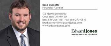 Brad P Burnette, Edward Jones 135 N Broadway, Coos Bay edwardjones.com 541-266-1851
