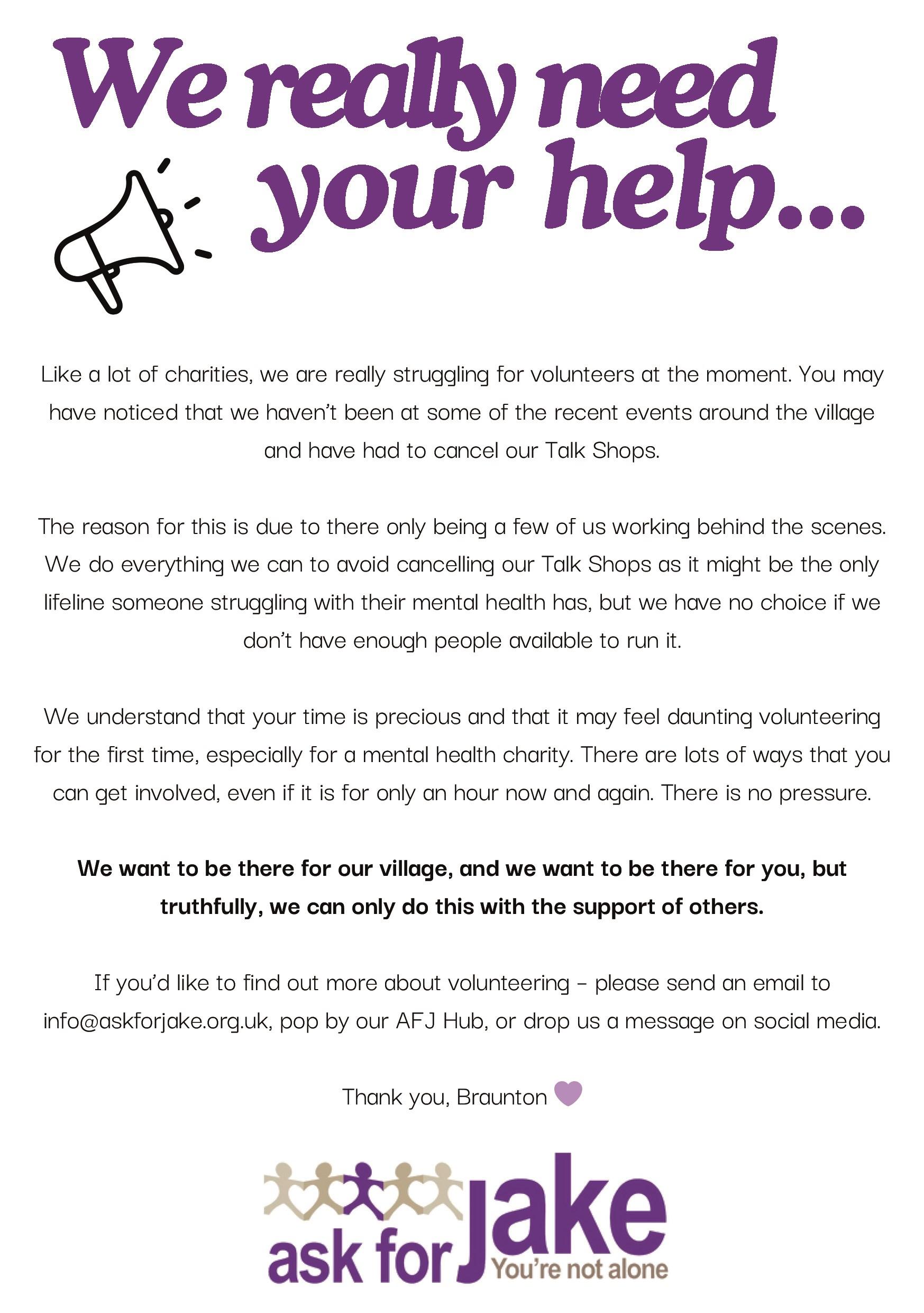 • Fundraising Volunteer – box collections, supermarket collections, delivering community talks, support events and logistics