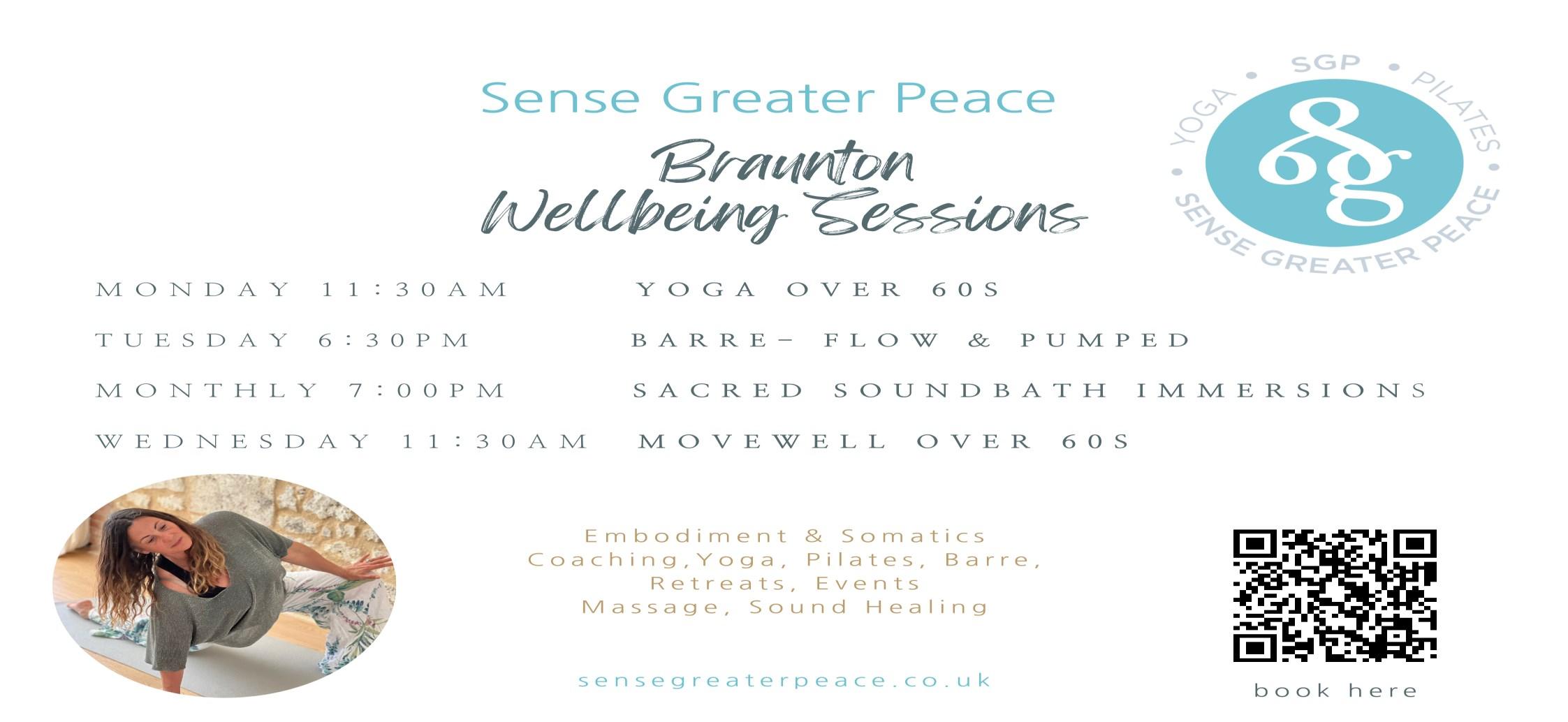 Pilates, Yoga, Soundbaths and Over 60s sessions sue@sensegreaterpeace.co.uk