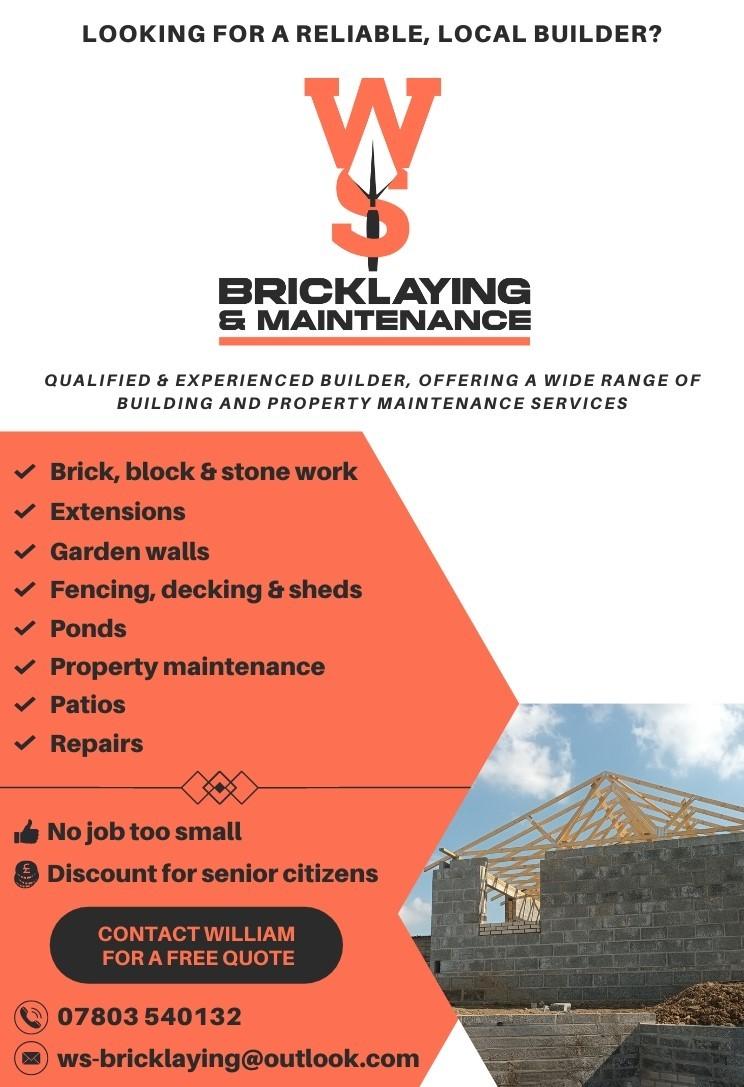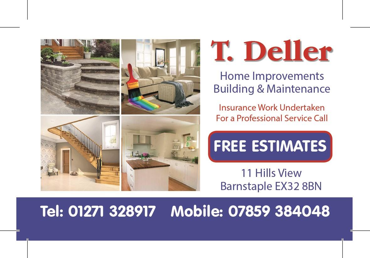 PROPERTY MAINTENANCE BUILDING PLUMBING AND ELECTRICAL Renovations Garden Walls Patios/Paths Retaining Walls Shed Bases Fencing, Decking & Much More FREE QUOTES AND FRIENDLY ADVICE NO JOB TOO SMALL FULLY INSURED CALL TERRY ON OFFICE 01271 325200 / TERRY 07578502775 SIMON POPHAM PLUMBING & HEATING Bathrooms Showers General Plumbing Leaks Radiator Replacements Cylinder Replacements TEL: 07974 357493 simonpopham@hotmail.co.uk Reliable & Friendly Service No Job Too Small Free Estimates City & Guilds, NVQ 2 & 3 Qualified Fully Insured