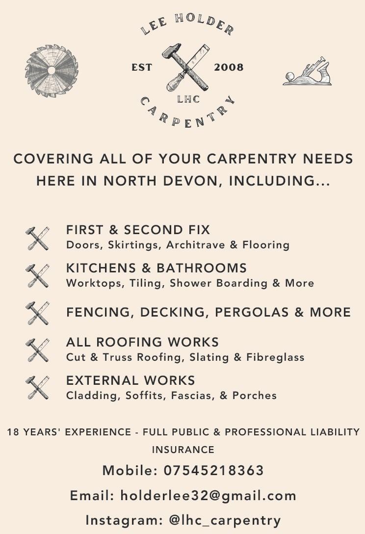 37 To advertise simply email lisa@insightmags.co.uk or call 07561 890 588 Any size Roof Domestic & Commercial Best quality materials used for long life Repairs & New roofs Felt & Fibreglass Guarantees given on all new Roofs CallJonPatten on 01271374661 07812171741 A ROOFING FlatRoofingNorthDevonforover25years Fencing - Patios - Paths Decking - Walls - Gates Garden Maintenance Free Quotes and Advice Fully Insured Registered Waste Carrier Please call 07720 179615 Del Mar Fencing & Property Maintenance Reliable, Quality work Interiors Painting & Decorating Wallpaper Specialist Coving TEL: 01271 324080 MOB: 07974 793643 13 Colombelles Cl. Fremington Barnstaple 25 Years Experience Interior & Exterior GEORGE R. TOSSELL PAINTER & DECORATOR Discount available for pensioners and ‘blue light’ card holders. Please call me for a chat and a free no obligation quote. Call Mark on 07805 239445 mbbuildingservices10@gmail.com