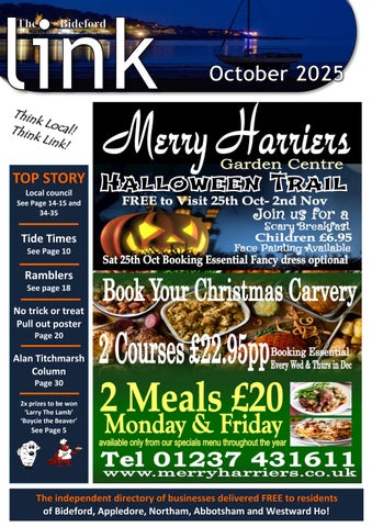 September 2023 8/9 FEATURE Barnstaple in Bloom 10/12/14 INDEX OF CLUBS 16/17 FEATURE Writer inspires Biographies 18/19 FEATURE Mission Unbreakable 20/21 FEATURE The Incredible Coast path challenge 23 FEATURE In pursuit of Winter sun 24 FEATURE Life in the fast plane 26/27 FEATURE Over and Above’s Late Summer Ball 28/29 FEATURE Joe Wicks’ Elvis Pancakes 32/34 CHURCH SERVICES 34 INDEX OF TELEPHONE NUMBERS 36 FEATURE Careers: It’s okay not to know 39 KIDS PAGE 41 FEATURE Alan Titchmarsh column 46 INDEX OF ADVERTISERS