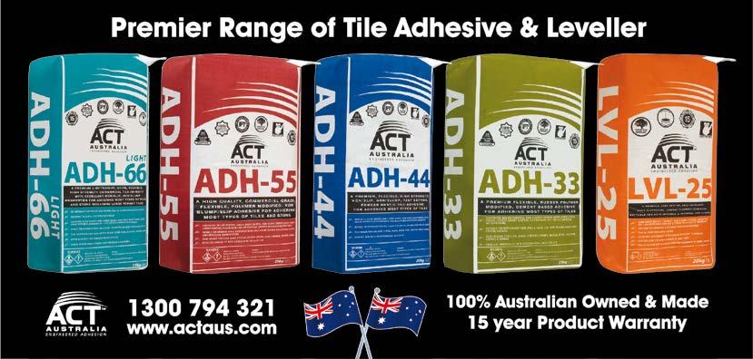 ACT Australia 9 Australian Institute of Waterproofing 23, 24 & 25 Australian Tile Council 32 Clear Software 27 Efflock 17 International MTC 5 Laser Measure 22 N.C.I.A. 3 SIKA 18 System Leveling 35 TRENDS FEATURED PRODUCTS TRADE FAIRS INDUSTRY NEWS 115 FULLY ENDORSED BY THE AUSTRALIAN TILE COUNCIL POOL TILE MARKET WATERPROOFING IN BALCONY CONSTRUCTION PHIL’S TILE WAREHOUSE PROFILE