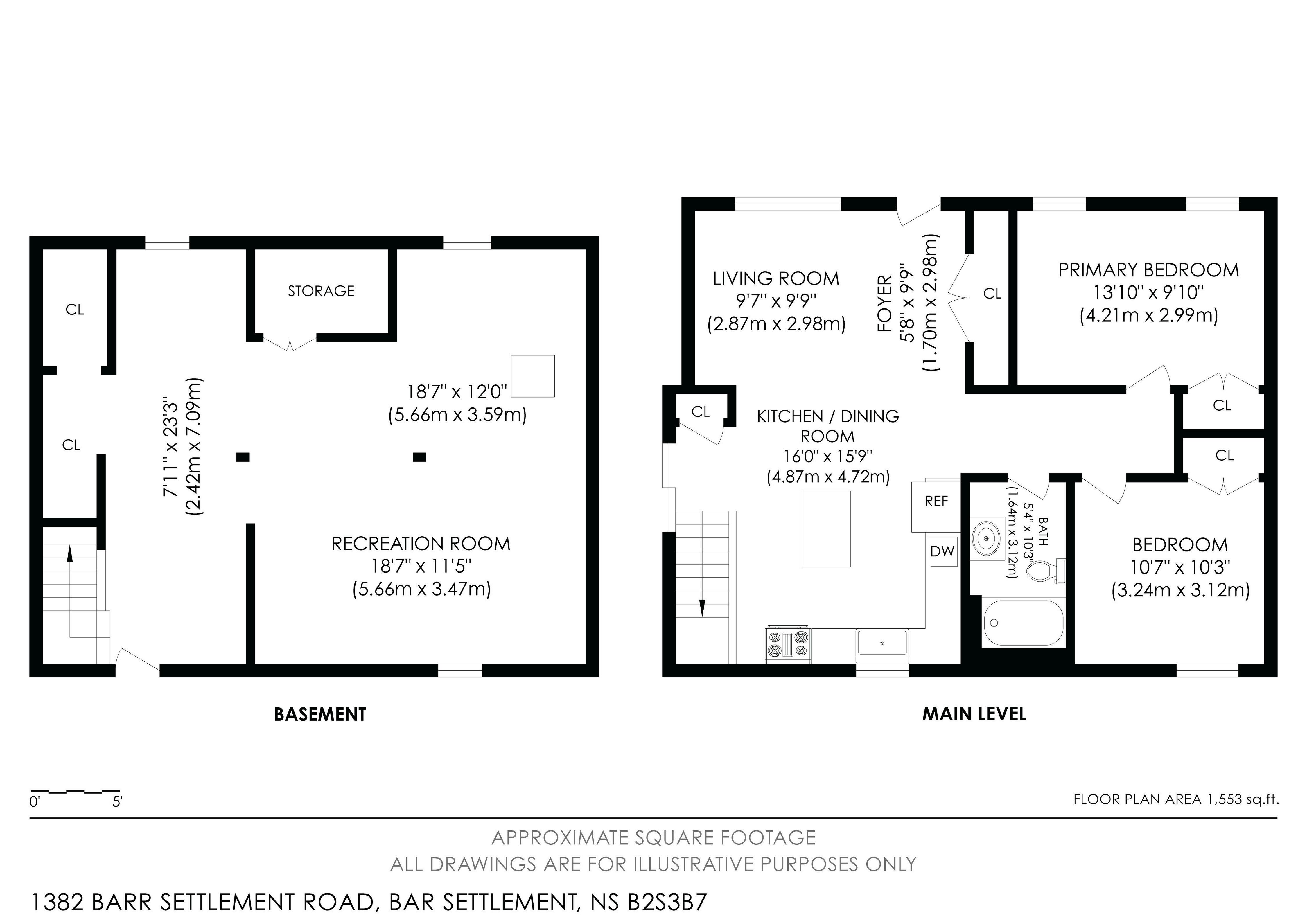 MAIN LEVEL - 859 SQFT |. LOWER LEVEL - 654 SQFT |. TOTAL LIVING AREA - 1553 SQFT LOWER LEVEL