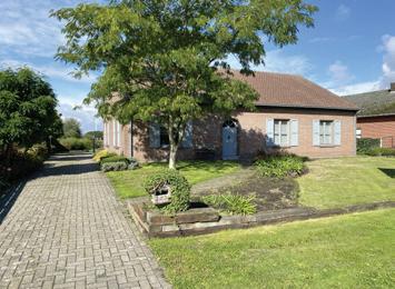 Gelijkvloerse woning met zw tuin. Opp. 779m², bew. opp. 162m²: inkomhal, leef ruimte met OH, keuken, ontbijthoek. 2 slpks, 1 badk, garage. Verzorgde tuin met vijver en tuinhuis en terras.