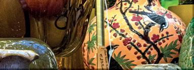 tapijten, handtassen in krokodillenleer, oud porselein, antieke