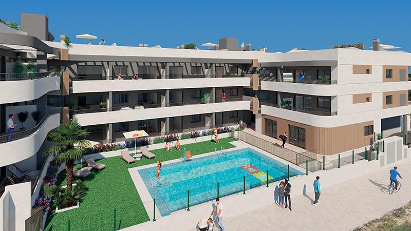 Appartementsgebouw van 2009 met verschillende appartement met 1, 2 of 3 slaapkamers en 1 of 2 badkamers met zuidgerichte terrassen. De appartementen beschikken over airconditioning met koude en warmte kanalen. Inclusief ondergrondse parkeerplaats en berging. Gemeenschappelijk zwembad. Gelegen op slechts 700m van het strand en vlakbij 2 supermarkten en het oude centrum van Calpe met tal van restaurants en bars in de buurt.