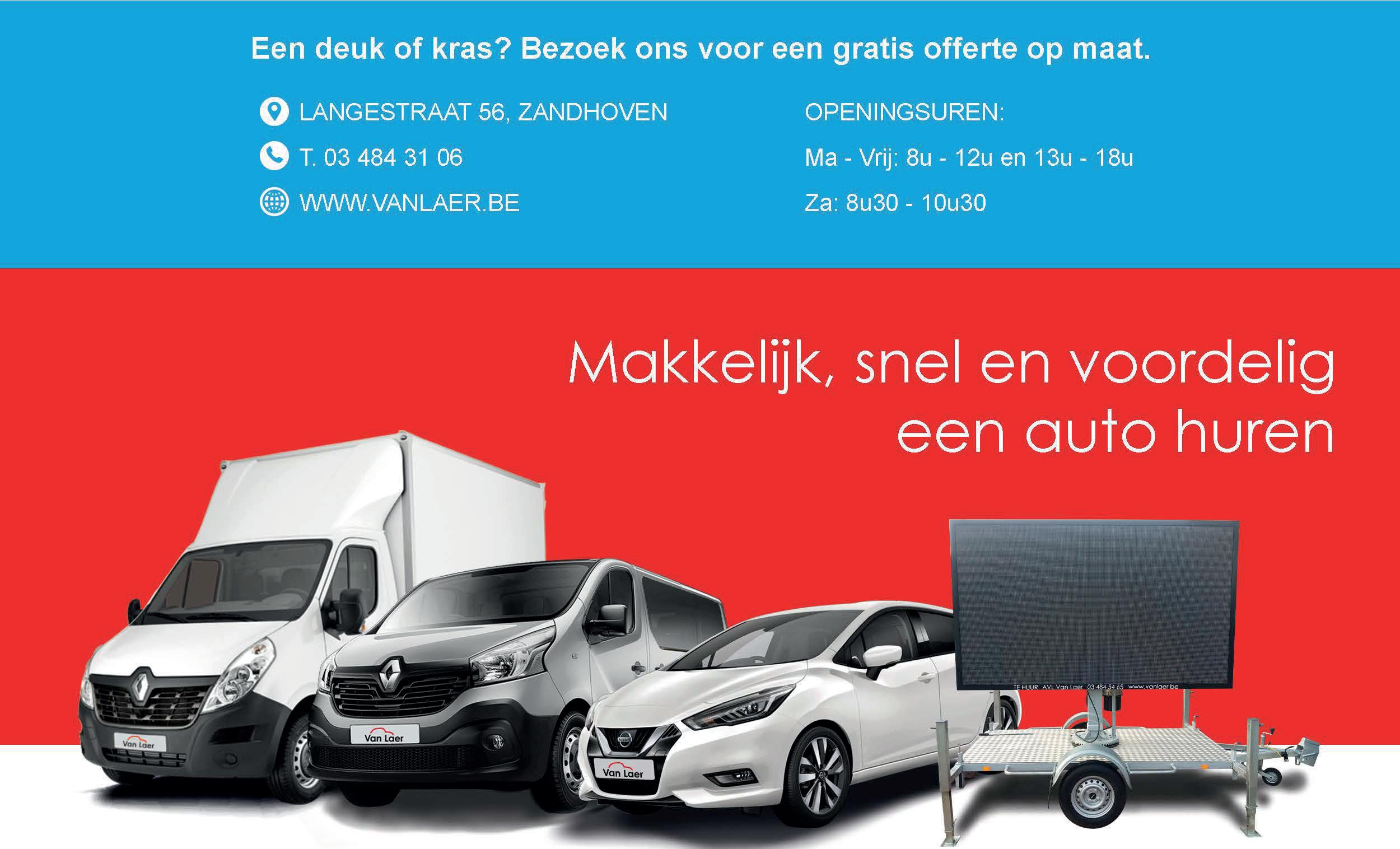 � autoverhuur Van Loer Langestraat 56, Zandhoven www.autoverhuurvanlaer.be 03 484 54 65