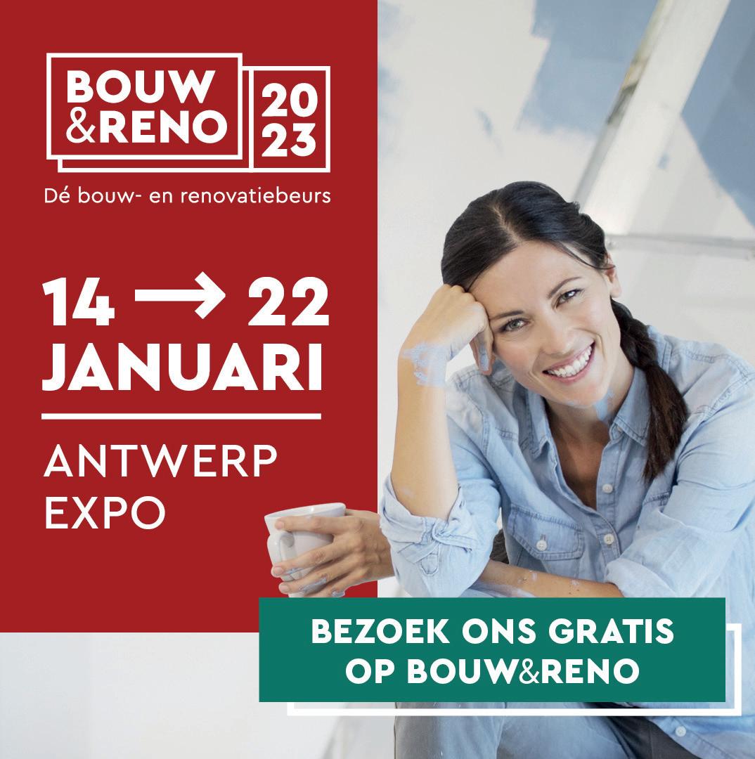 28 *Actie geldig van 1/01/2023 tem 31/01/2023 bij bestelling van een nieuwe keuken. Niet cumuleerbaar met andere acties. Voorwaarden > vraag ernaar in één van onze toonzalen Belgische kwaliteit Prijs bij bestelling 2 jaar vast Geen voorschot Uw keuken in virtual reality PRIJSVAST JAAR Dé trendsetter in keukens www.dovy.be/afspraak-maken Maak nu een afspraak en je persoonlijke adviseur staat voor je klaar BESTEL NÚ EN PLAATS JE DROOMKEUKEN TOT 2 JAAR LATER AAN DEZELFDE PRIJS -20%* op kasten -20%* op werkbladen -20%* op toestellen + + BEURSACTIE BIJ DOVY NU AL