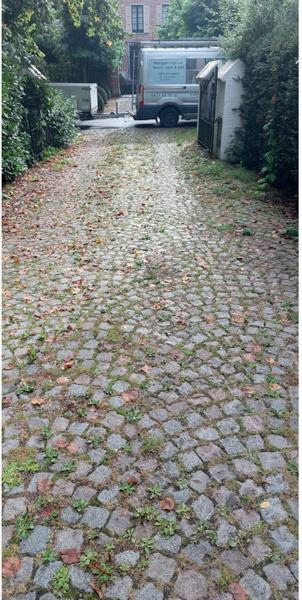 De reiniging gebeurt met warm water onder een temperatuur van 95°. Door deze hoge temperatuur doden wij niet enkel het onkruid en mossen tot in de wortel maar weken wij ook het overige vuil los waardoor wij kunnen werken onder lage druk zonder het oppervlak te beschadigen. Dit ook zonder toevoeging van chemisch producten en dus veilig voor kinderen, dieren en planten. VOOR NA Vraag vrijblijvend uw offerte