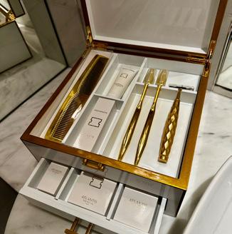 Můj pokoj má výhled na ostrov Palm Jumeirah a z balkónu vidím přímo na fontánu Skyblaze, která pravidelně ožívá vodní a ohnivou show. Z druhé strany hledíte na otevřené moře, takže máte pocit, že jste na lodi plující na vlnách oceánu. Vybavení jako například dárek v podobě speciálního parfému nebo zlatý box s toaletními potřebami mají i pokoje základní kategorie. Suity jsou pecka – zvlášť penthouse, který leží v posledním 43. patře a ve výšce 195 metrů nad zemí. Při prohlídce pokojů si uvědomuji pozornost a péči, jaká byla věnována i těm nejmenším detailům. Další věc, kterou ve velkých nových hotelech nevidíte moc často.