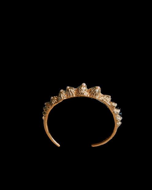 Pracovat s čistým ryzím zlatem mě lákalo už dlouho nejen kvůli jeho auře a mechanickým vlastnostem, ale i proto, že v našem regionu to není úplně běžné (narozdíl třeba od arabských zemí, kde se při výrobě klenotů s vyššími ryzostmi standardně pracuje). Odtud i název nejnovější kolekce: RYZÍ. Je zářivá, intuitivní, hravá, živelná a přirozeně organická. Zrcadlí další z mých poloh jako tvůrce. Je protipólem mých předešlých kolekcí navržených ve 3D prostoru i precizní a časově extrémně náročné řadě PUK. Další rovina RYZÍ kolekce je čistě pragmatická – považuji ji především za investici zhmotněnou v krásném šperku z drahých materiálů s přidanou uměleckou hodnotou. V kolekci RYZÍ pracuji s motivem signování každé ryzí nugety číselnou značkou, tak jak je zvykem u investičních slitků. A protože při tvarování nepoužívám jinou slitinu nebo pájku, zůstávají valouny v ryzosti 999/000. Majitel tak při sobě vlastně neustále nosí nejen osobní talisman v podobě šperku, ale zároveň investiční slitinu.
