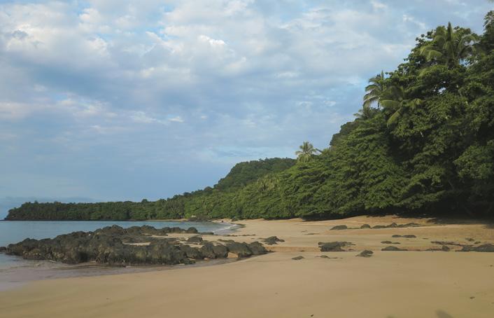 Zpátky na pláži kousek od Sundy Praia stojí působivá ruina kostela, z jehož střechy dnes vyrůstají stromy. Deštný prales stavbu nejen zarůstá, ale kámen používá jako zkratku, která vede liány blíž ke korunám stromů. Když v 15. století na ostrov připluli Portugalci, byl téměř neobydlený. Poté, co ostrov znovu nabyl nezávislosti, deštný prales zpátky pohltil bývalé kakaové plantáže.