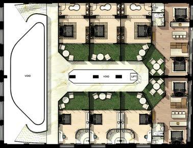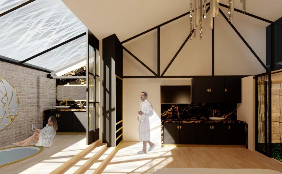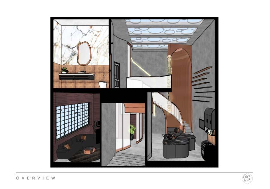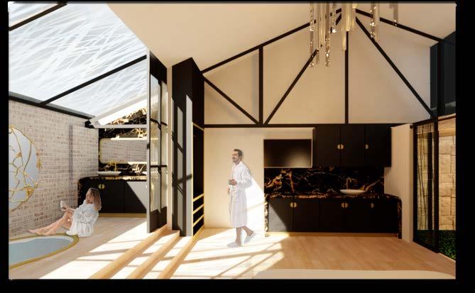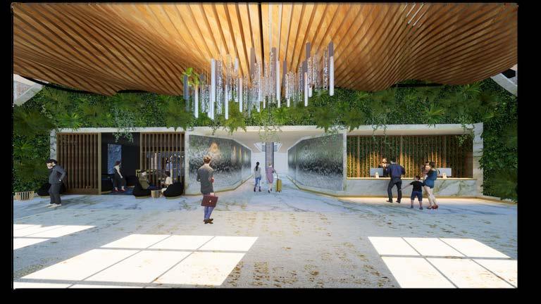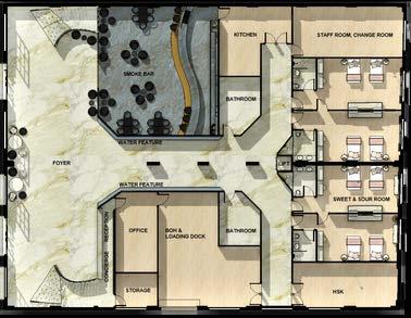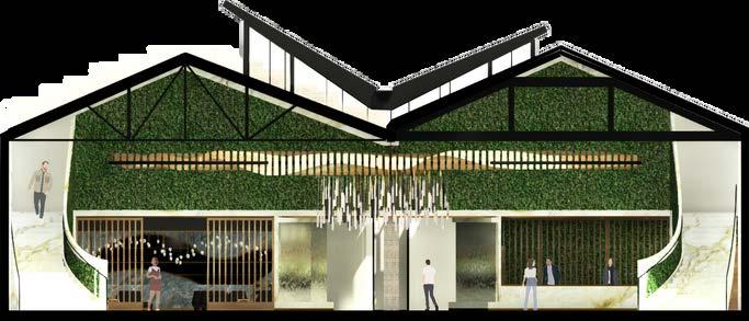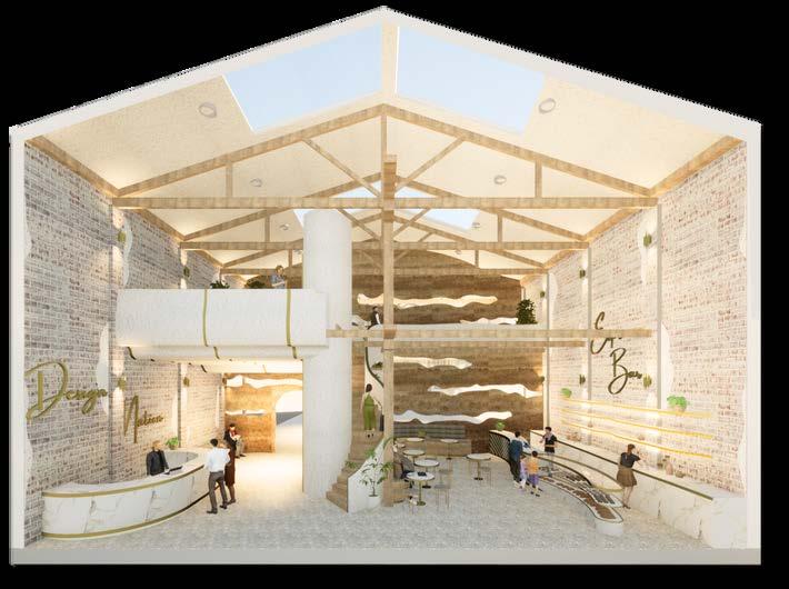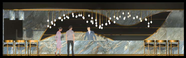 Thisisamoodyspacethatwillenlightenthe sensesofexcitementthroughexperience. It’sdesignedwithafocusoncustomerservice withinteractivebartenderscreatingsmokey cocktailsandanopenshowkitchenwithfirey chefperformances.Thedesignindulgesthe sensesusingorganicformsandclassymaterials inspiredbyformsofsmokeandflames.