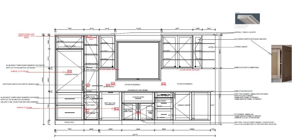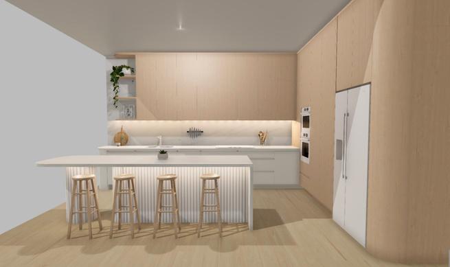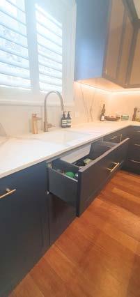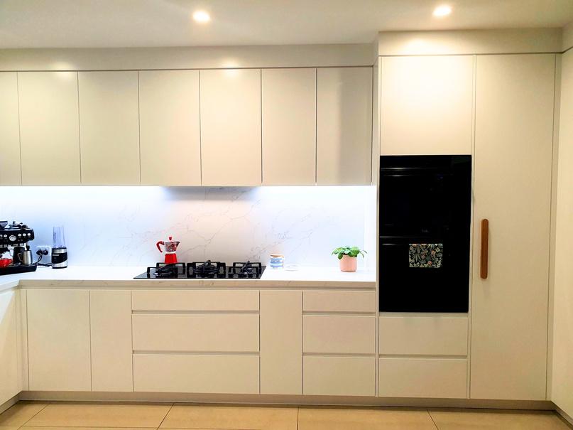 Specifications: Polyurethane Flat Doors | Polytec Plantation Ash Internals | Blum Merivobox Soft Close | AnteriorXL Carrara | Sharknose Handles