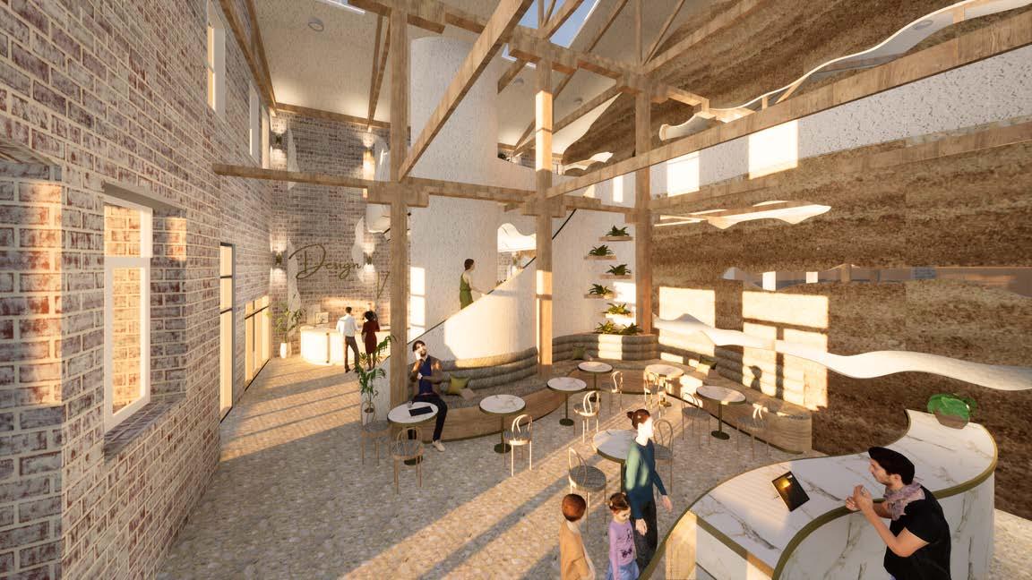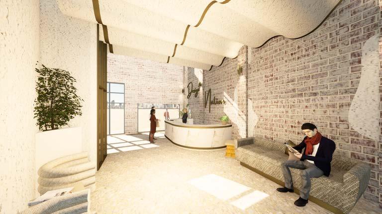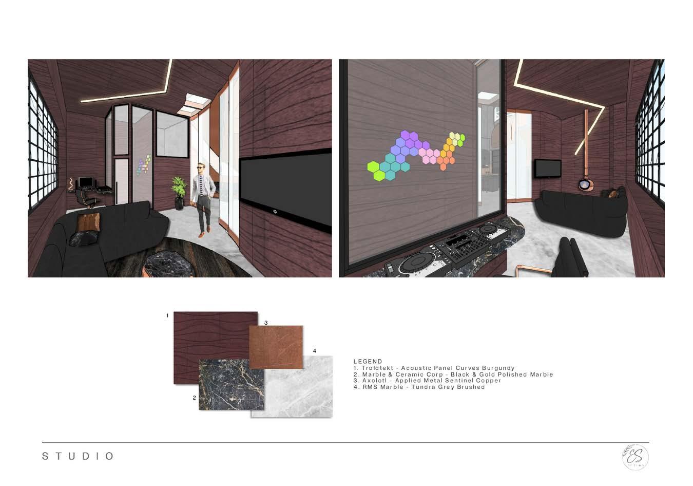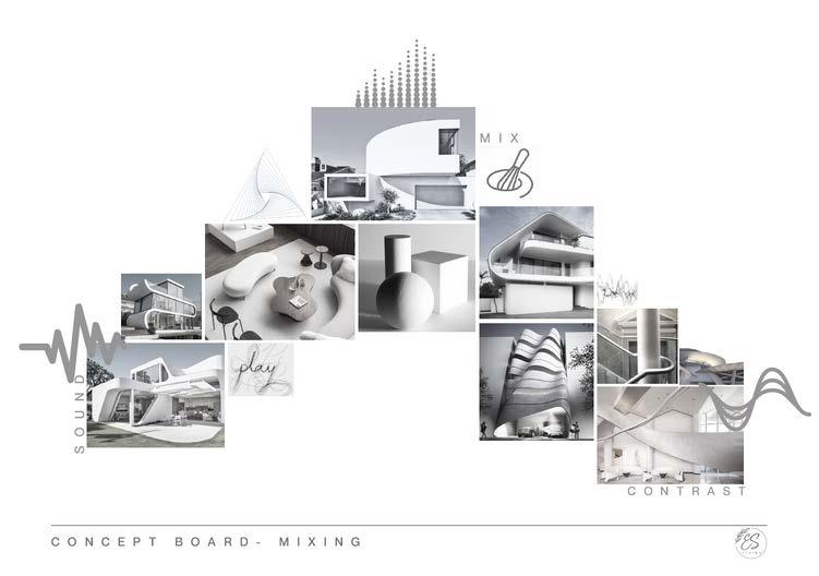 Thisisaplayfulconceptofmixingdifferentsoundwaves,likeaDJ playsandmixesmusic.Theuseofcontrastingstraightandcurved soundwaveswillshowsharpandsofttones,andlayersofmixinga song.Theentrywillreferencethequietstartofthesongthrough lowvolumespaceandthesocialareasrepresentthelivelychorus withlargervolumesanddepth.Theendingisleftopentosignify thatthestoryofthebuildingandtheclientisongoing.