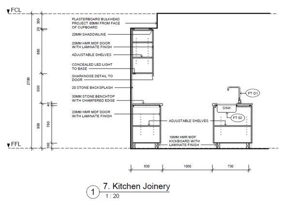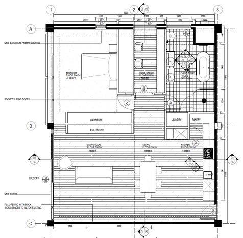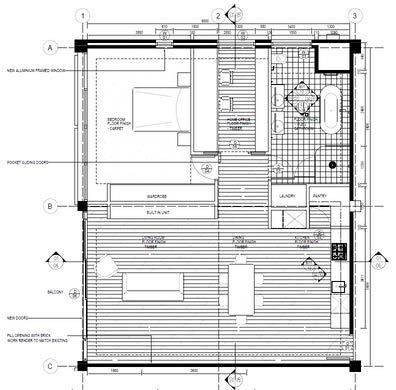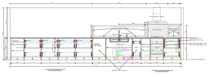 AutoCAD was use to document Existing Plan & Sections, Demolition Plan, Proposed Plan & Sections, Reflected Ceiling & Electrical Plan, Service Hydraulic Plan, Detailed Kitchen & Bathroom Plans, Kitchen & Bathroom Elevations and schedules for this apartment