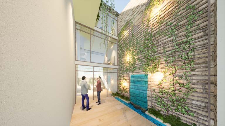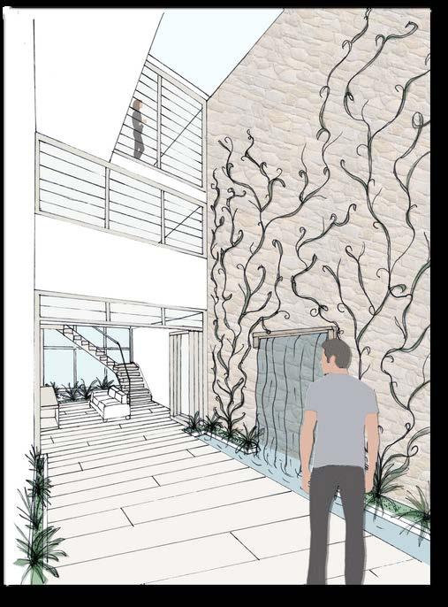 Anecosystemismadeupofsmall organismswhichcanformlargerainforests, deserts,oceansandevenfoodandair.It’sa sourceoflifeforallthingsbigandsmall. Thecourtyardwillrepresentthislifesource forthebuilding.Itwillprovidelightand ventilationforthehumansthatlivewithin thistinyecosystemhouse.Emphasison spaceandlightwillbeachievedwithglass, mirrorsandvoids. It’satinybuildingbuthasabiginteriorof life.