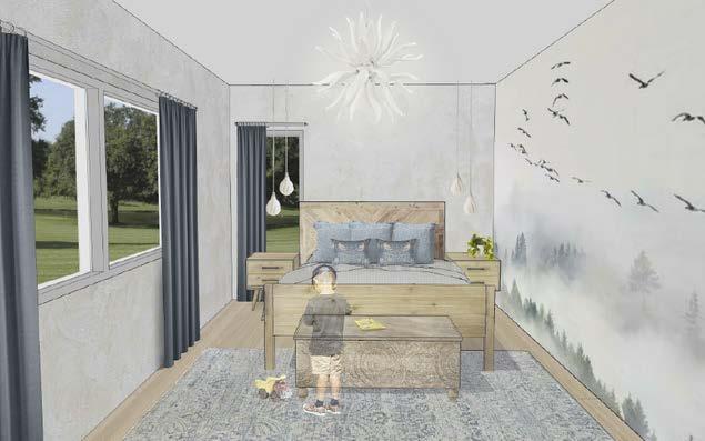 The guest room accommodates their international visitors and their three year old grandson. The space is classy and unique for guests but also calming for a sleeping child. BRIEF