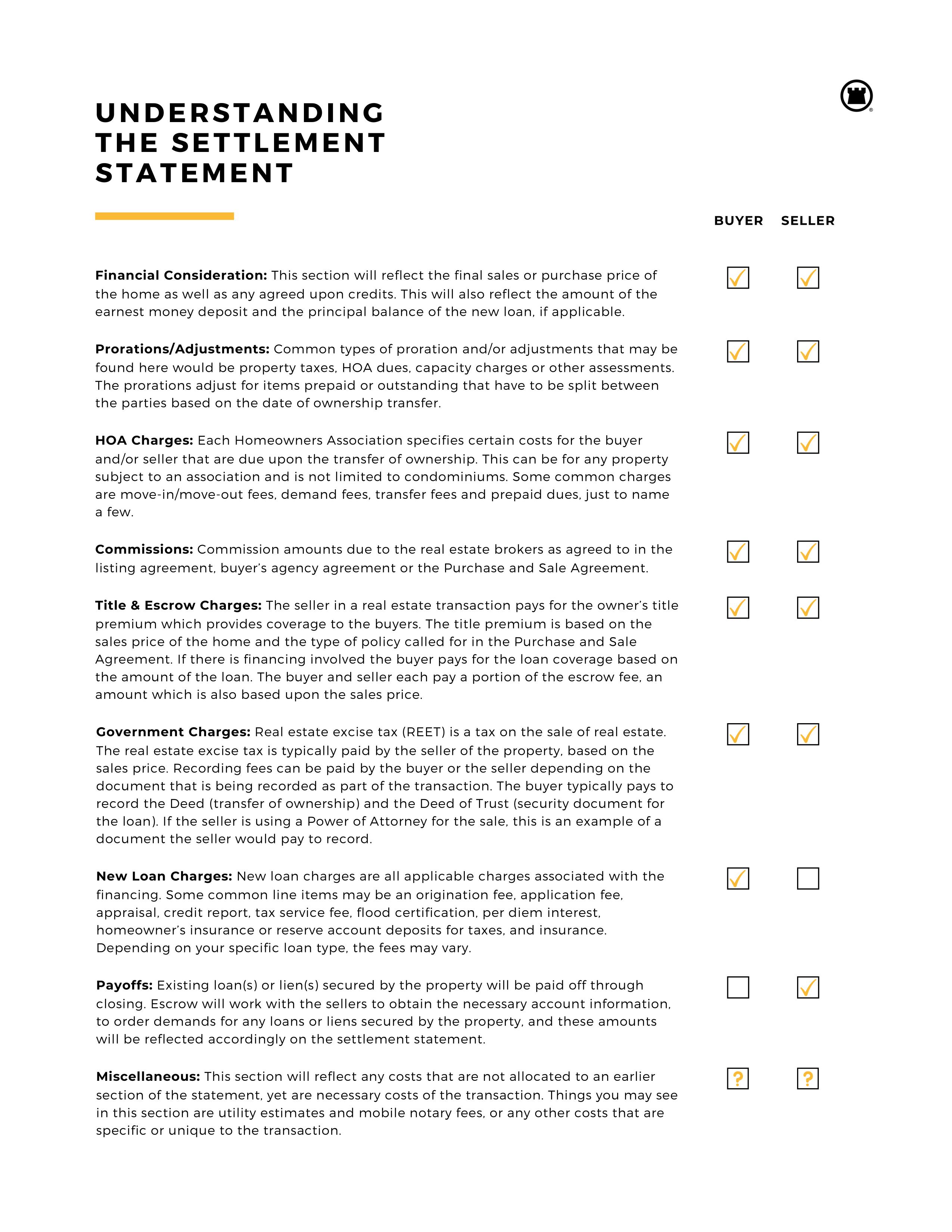 Mobile notary fees, if any Recording charges for all documents in buyer's name Property tax proration from date of acquisition