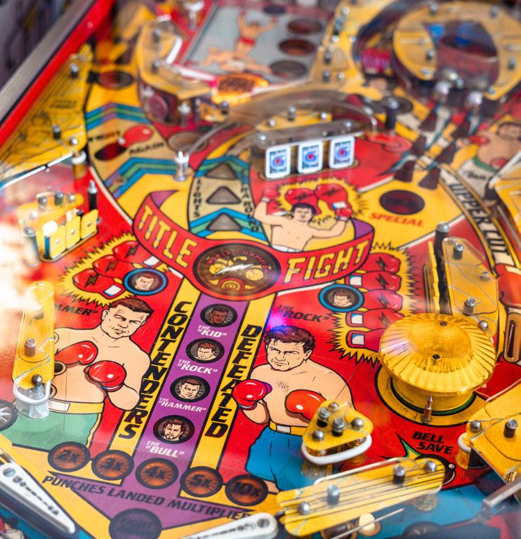 The Arcade offers pinball and stand up arcade games, pool tables, air hockey, and a bar. Notable games include Baby Pacman, Frogger, Centipede, Galaga, Donkey Kong, Back to the Future pinball and more.
