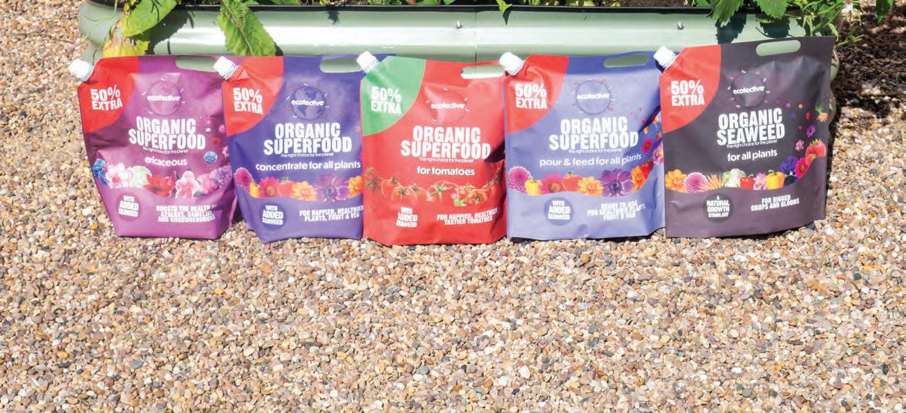 As well as being more sustainable, ecofective® Organic Superfood 1.2 litre pouches are supplied with a value-added promotion with 50% extra feed, retailing at £7.99. The 50% extra promotion and flexible pouch also features on the new ecofective® Organic Seaweed, a natural growth stimulant for all plants. The 50% extra deal is highlighted on pack so the special offer can be easily seen by shoppers in store.