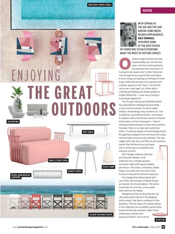 WITH SPRING IN THE AIR AND THE SUN MAKING SOME MUCH NEEDED APPEARANCES, ANJI CONNELL EXPLORES SOME OF THE BEST PIECES OF FURNITURE TO HELP EVERYONE MAKE THE MOST OF OUTSIDE SPACES