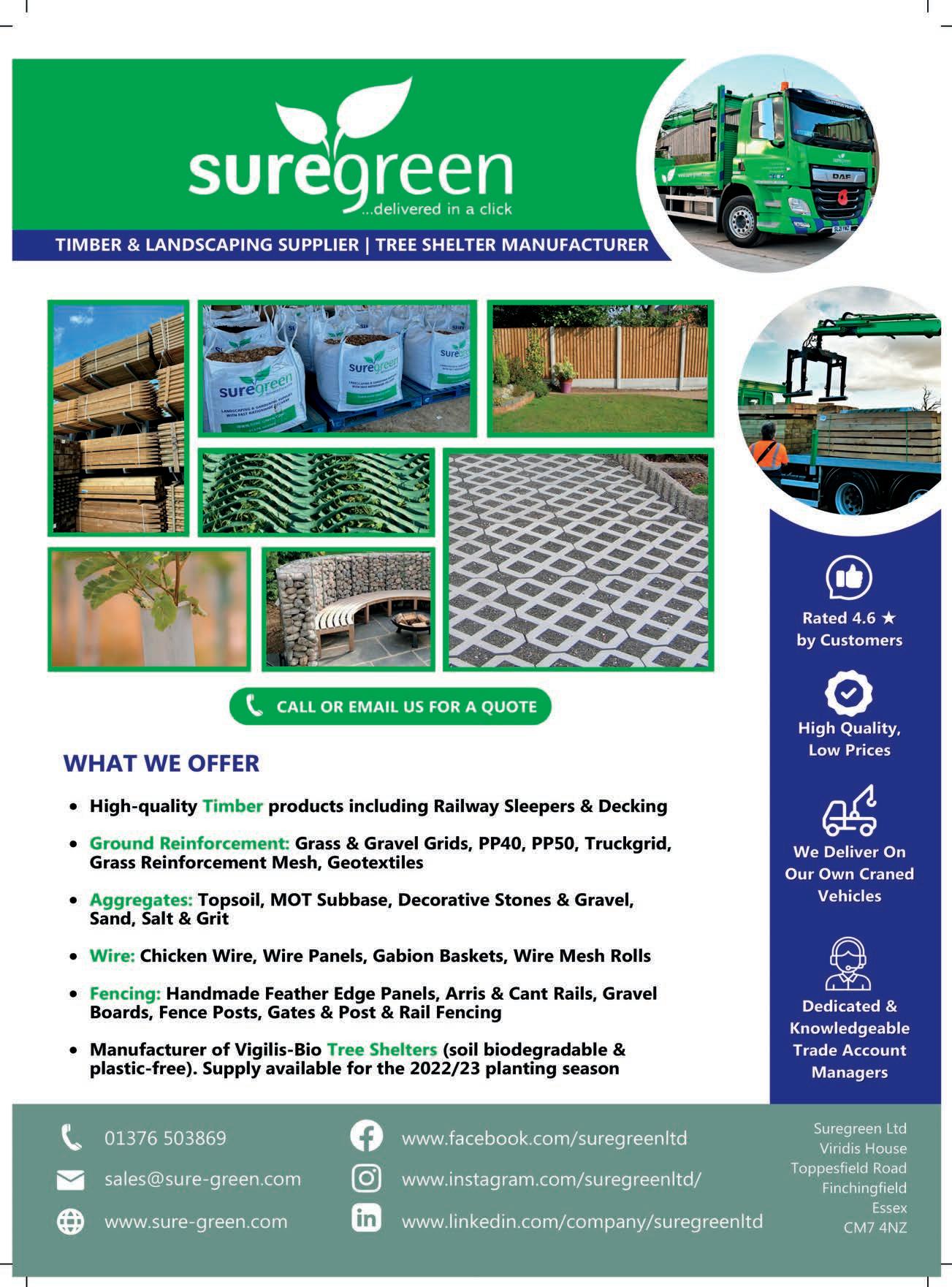 01252 517571 SERVICE NEXT DAY DELIVERY HERE TO HELP CREATE AMAZING SPACES 2 Lynchford Lane, Farnborough, GU14 6JD 5 mins from M3, J4 Hundreds of natural stone & porcelain options Bespoke sourcing, accessories, lighting & more www.kebur.co.uk YOU LOYALTY REWARDS DEDICATED SUPPORT Photo courtesy of TAW Garden Landscapes 150 acre nursery supplying the trade for over 40 years. Nationwide delivery. Advisory services available. www.cadmap.co.uk • info@cadmap.co.uk Surrey 01483 429385 London 020 81111 385 Brighton 01273 027327 Southampton 0238 2023881 Cadmap Ltd provide detailed Topographical Land Surveys for award-winning landscape design architects, many who have won Gold medals at RHS Shows and other prestigious awards around the United Kingdom. Cadmap Ltd are experienced at providing detailed Land surveys for landscape design compared to standard Land Survey detailing for housing developments. The company is a full member of The Survey Association, fully insured and holds 5m professional indemnity cover. If you require a Topographical Land Survey please contact us on the below details and Cadmap Ltd will provide a fee proposal free of charge for any size project you require. Landscape Survey Specialists www.access-irrigation.co.uk • sales@access-irrigation.co.uk 01788 823811 FOR ALL YOUR IRRIGATION NEEDS Design and Advice • Irrigation Parts Catalogue 24/7 Online Parts Ordering Creating Inspiring Streetscenes CIS Street Furniture offer a diverse range of street furniture which will complement any location. As a result of the built environment compaction can inhibit or prevent natural root growth of trees. CIS SUDs compliant resin bound tree grilles are a great way of enhancing the sustainability of your project for future generations. Find out more at our website below. Tel: 01483 203388 www.cis-streetfurniture.co.uk