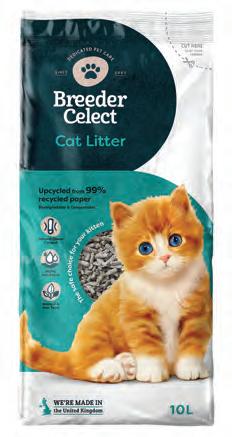 Celect the better cat litter for composting Celect Ginger. 3 Highly absorbent cat litter 3 With natural odour control 3 Low dust 3 Softs on paws 3 Compostable & Biodegradable 3 Upcycled from 99% recycled paper 3 No chemicals or additives Made locally, here in the UK Available in 10L, 20L and 30L packs | Follow Ginger’s adventures on Instagram @breedercelect *Check with your local council | For more information, visit fibrecycle.co.uk