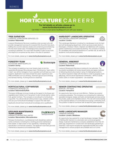For full details on all jobs, please go to www.horticulturecareers.co.uk