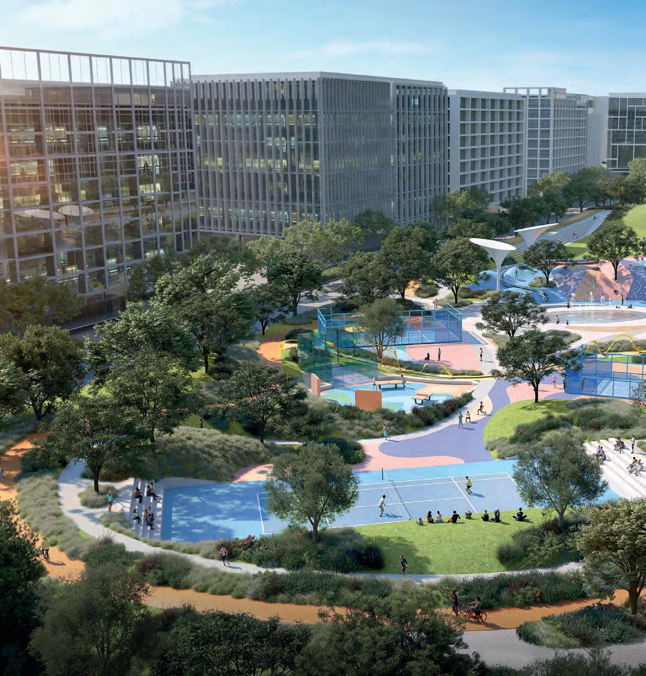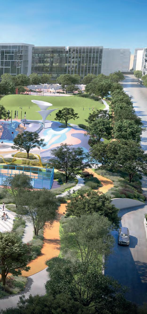 With plans to host community events, the park will feature a sky ring, providing shelter, and directing rainwater to support irrigation systems.