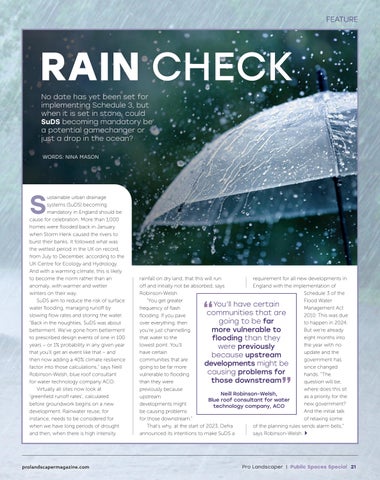 Before the end of the year, we could also see sustainable urban drainage systems (SuDS) become a legal requirement with the implementation of Schedule 3 – though there’s been no significant progress on this, despite it being set to happen this year.