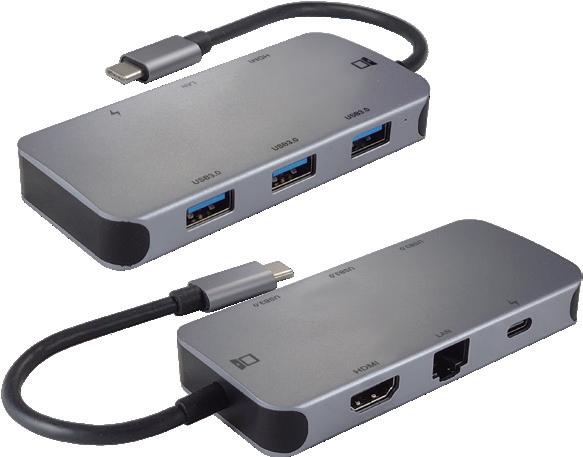 USB-C(Port 1) supports data transfer and 5V/1.5A charging downstream. Supports resolution up to 4K@60Hz. USB-A/USB-C providing you high speed transmission up to 5Gbps. Backwards compatible with USB2.0. PD 3.0 provides max 45W charging ability.