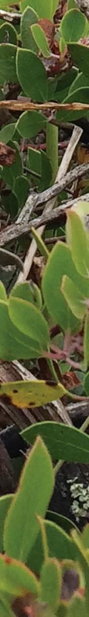One of the most imperiled of these habitats, maritime chaparral, thrives in the coastal fog and nutrient-poor soils of the sandstone ridges above the slough. eir ridgeline locations often feature sweeping views that make them prime candidates for development. If cleared, the slow-growing native chaparral plants face an uphill struggle to recover, particularly since many germinate e ectively only in the presence of re.